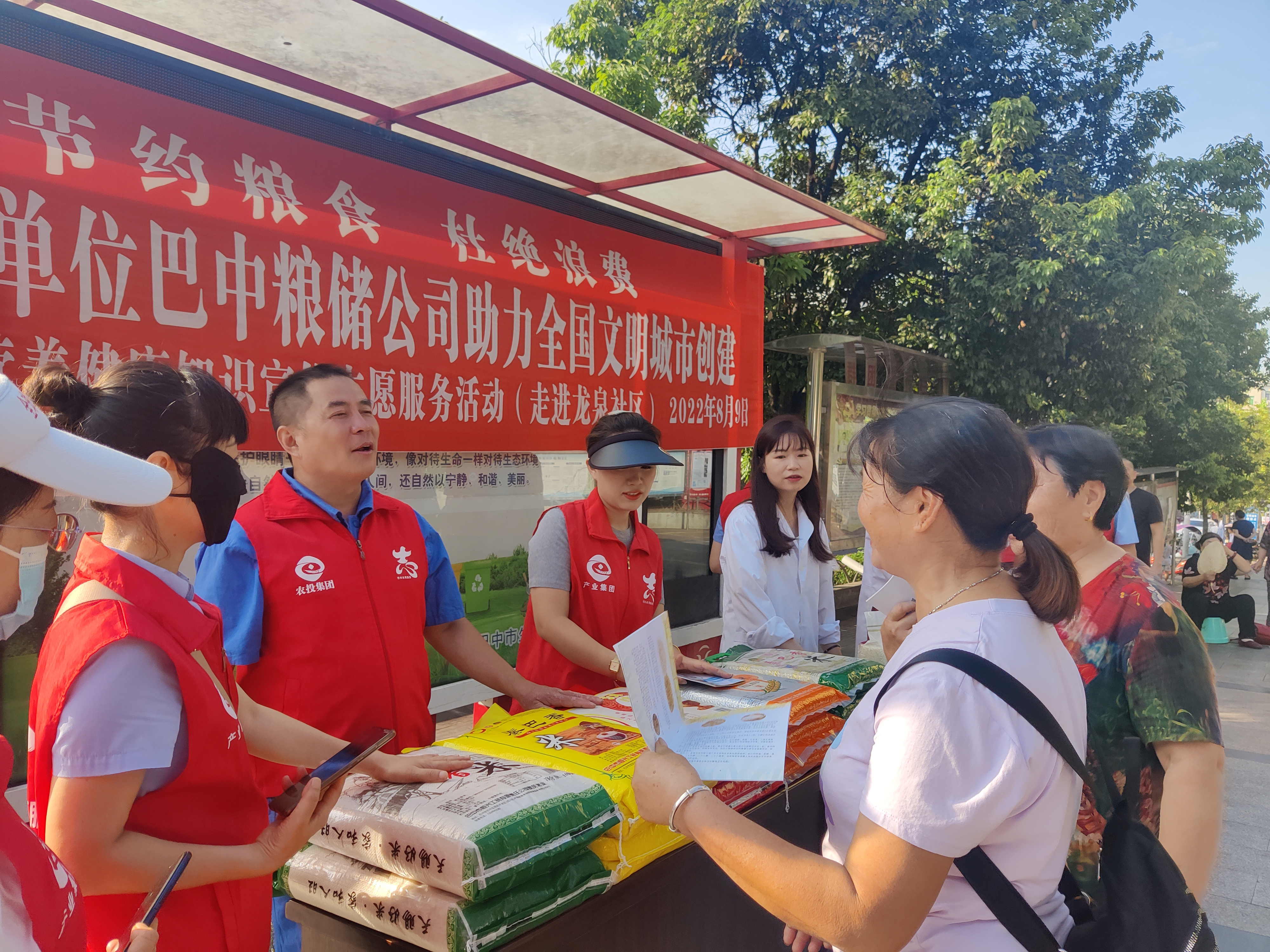 食為政首,糧安天下。為弘揚(yáng)中華民族勤儉節(jié)約傳統(tǒng)美德,深入開展愛糧節(jié)糧宣傳教育,助力巴中全國(guó)文明城市創(chuàng)建。8月9日,四川巴中國(guó)家糧食和物資儲(chǔ)備庫(kù)有限公司走進(jìn)巴州區(qū)江北街道龍泉社區(qū)開展“節(jié)約糧食·杜絕浪費(fèi)”志愿服務(wù)活動(dòng)。